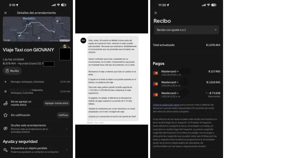 Minuto30.com .- What should have been a daily journey from the José María Córdova Airport to the south of the Aburrá Valley became a financial nightmare for citizen Johan Coy. Through their social networks, the user reported a disproportionate charge by the Uber platform, which went from an estimated rate of $127,460 to an actual charge of $1,624,942 COP.